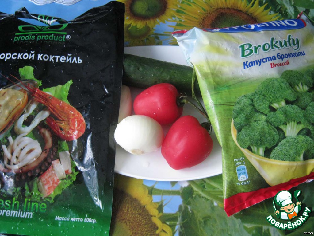 Так как я шлю привет из Приморья, то и основным компонентом салата должно быть что-то, связанное с морем. Я решила остановить свой выбор на Морском коктейле.