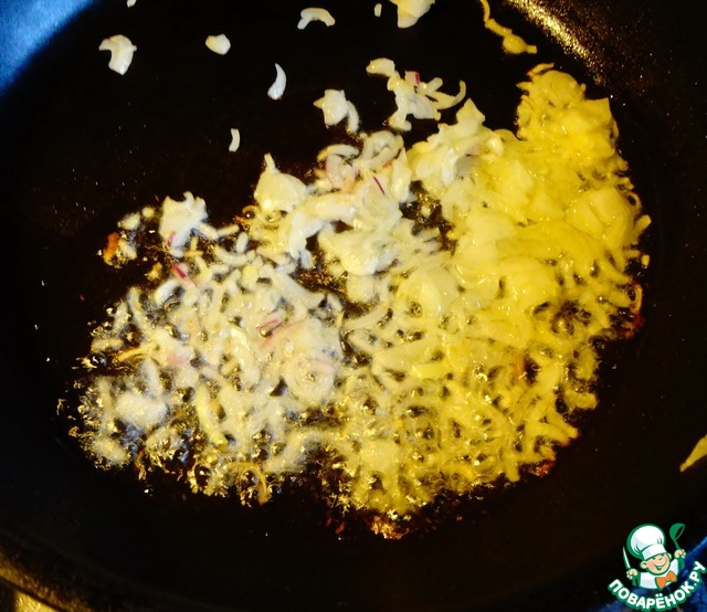 Мелко порезанный лук -шалот поджарить до хруста на растительном масле.