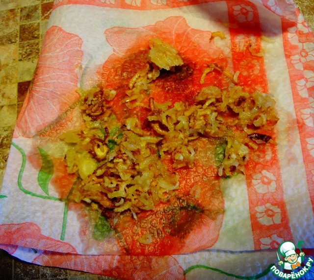 Откинуть на бумажную салфетку, чтобы удалить лишний жир.