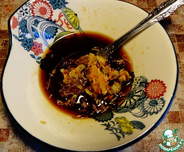 Для соуса смешать в блюдцеводу. лимонный сок, рыбный соус, сахарный песок и 1 ст. л. растительного масла.