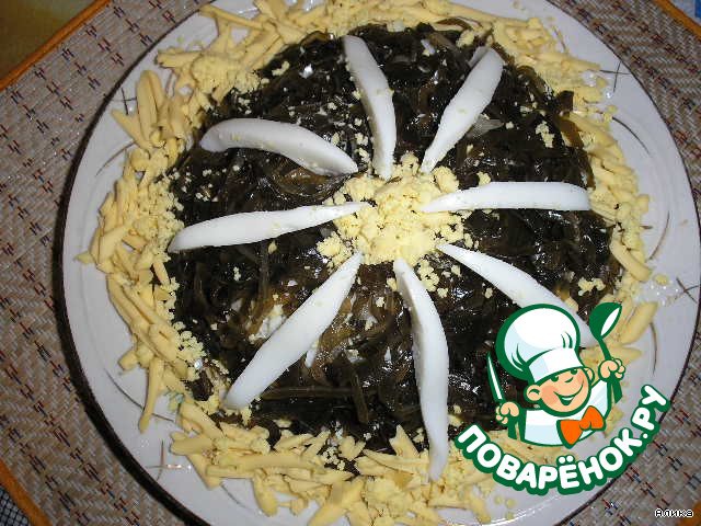 Укрываем наш салатик оставшейся половиной морской капусты.