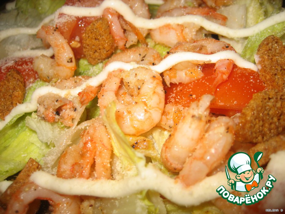 1.Kреветки отвариваем, очищаем и обжариваем на растительном масле, посолить и поперчить...