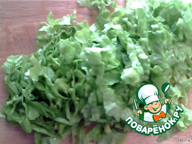 Оставшуюся часть салатного пучка нарезаем "лапшой".