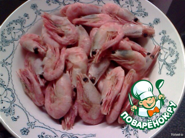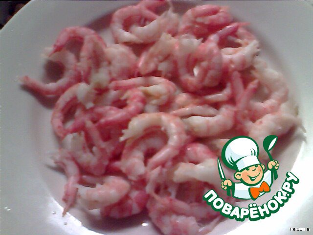 Заранее отвариваем креветки в течение 3-5 мин. в кипящей воде.