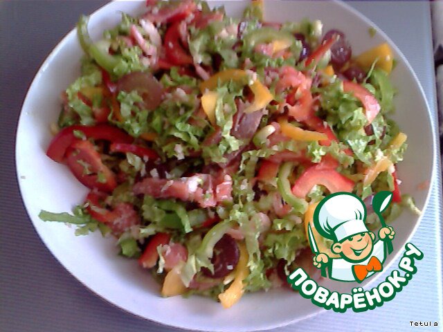 | Средиземноморское побережье. Вечер. Легкий ветерок. В пене прибоя отражаются звезды, огни прибрежных ресторанчиков и все это... только для Вас. Этот салат подарит Вам все самое лучшее, что может дать женщине природа Средиземноморья. На конкурс "Scarlett к 8 марта" |