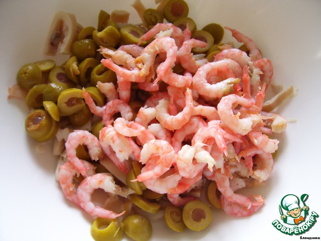 коктейльные креветки), доводим до кипения и выключаем, сливаем воду, ставим остужаться. Тем временем готовим остальные продукты для салата.