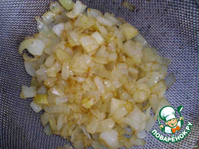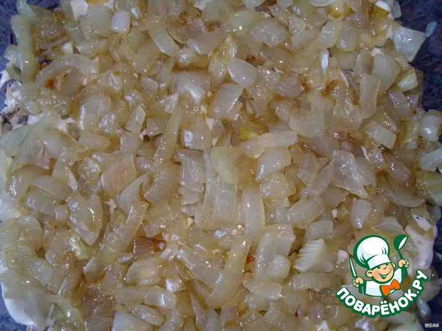 Лук чистим, нарезаем, обжариваем, даем стечь лишнему маслу, охлаждаем.
