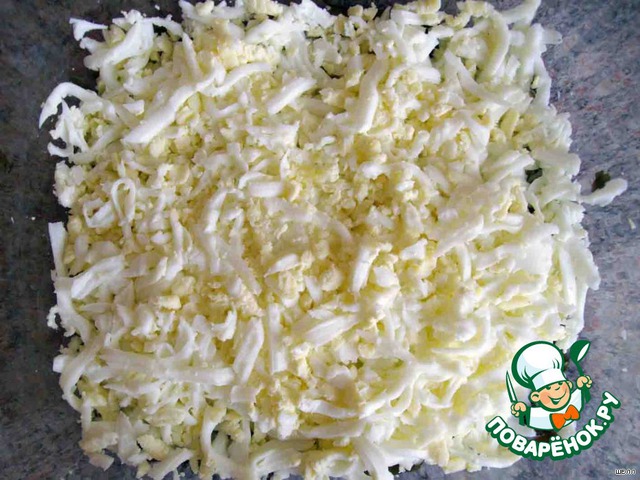 Второй слой - трем на крупной терке яйца.