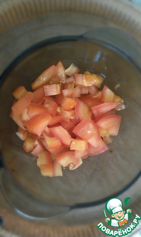 Помидор использовался сырой "турецкий", других в магазине не было. Порезали на квадратики как-то так.