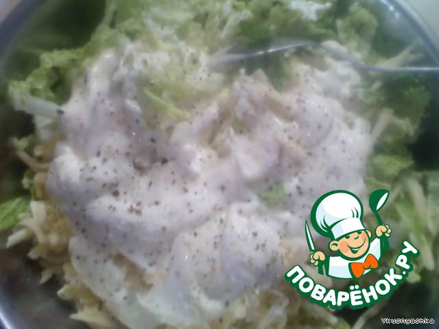Нарезаем пекинскую капустку (кто любит, можно и руками измельчить листики).