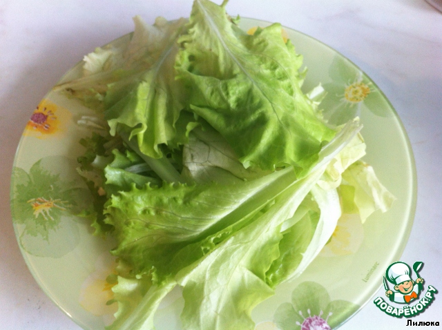Листья салата вымыли и высушили.
