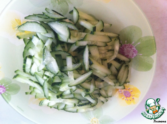 Свежий огурец порезали соломкой.