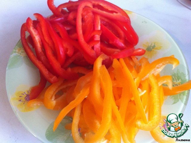 Болгарский перец порезали соломкой.