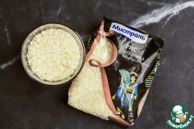 Рис залить 100мл. воды, варить на маленьком огне 15-20 минут до готовности. Не мешать, при необходимости добавить ещё немного воды. Немного посолить в конце готовки.