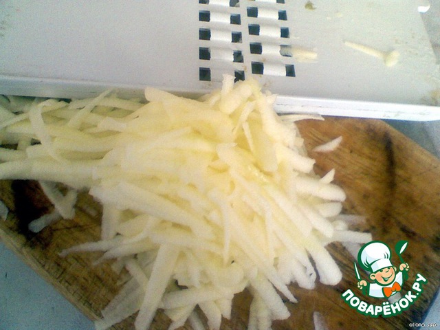 Яблоки очищаем от шкурки и натираем на крупной тeрке.
