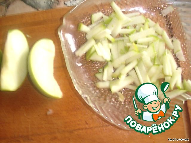 Яблоко режем тонкими полосками и сбрызгиваем лимонным соком