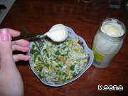 Все ингредиенты перемешиваем, перчим, солим и заправляем майонезом.
