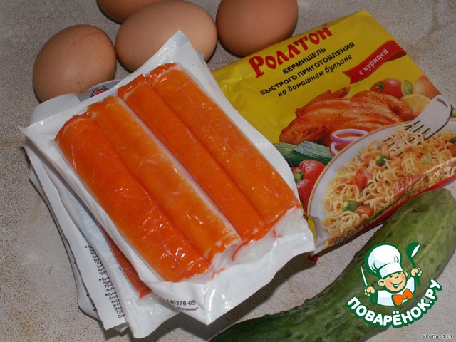 Знаю, что такая лапша не полезна. Но иногда можно покушать и такой салатик.