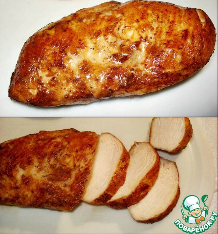На раскалённой сковороде в растительном масле обжариваем куриную грудку до красивой золотистости (примерно по 2 минуты с каждой стороны)
