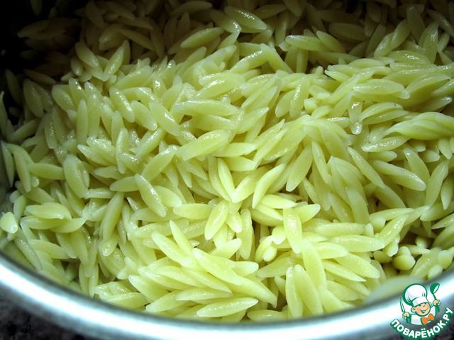 | Орзо (орсо, ризони) - это укороченные итальянские макароны, напоминающие большие зерна риса. Рецепт давно ждал своего часа (когда-то списала в интернете), не попадались на глаза эти макарончики. И вот я их купила, салат приготовлен и всем понравился. |