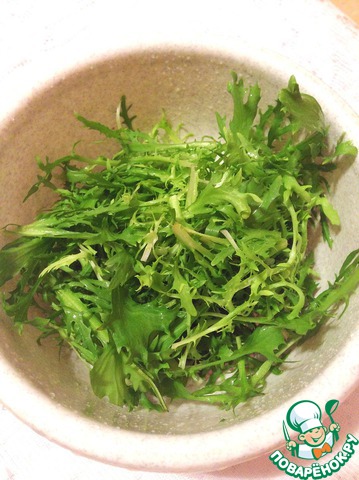 Промываем, обсушиваем и разбираем на веточки фризе. Настоятельно рекомендую использовать именно этот сорт, так как он наиболее оптимален для нашего салата по вкусу и внешнему виду.