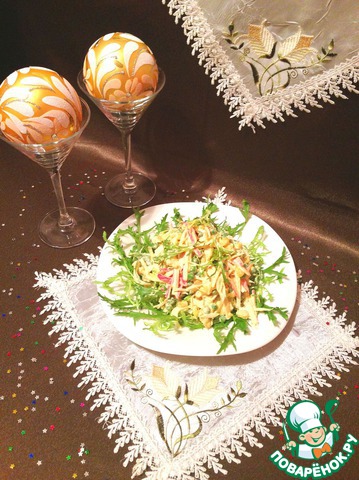 | Немного осовремененная версия всеми любимого в 90-х салата с крабовыми палочками и кукурузой. Наряду с оливье и селедкой под шубой этот салат традиционно готовили на новогодний стол. В последнее время из-за обилия продуктов и множества других прекрасных рецептов салатов этот всеми любимый когда-то салат отошел на задний план, во всяком случае у нас в семье точно. Но иногда ностальгия по прошлому, в том числе и кулинарному, дает о себе знать. Вспомнился мне этот салат недавно, но в классическом варианте воспроизводить его точно не хотелось. И пришел в голову вот такой витаминизированный его вариант. Получилось очень-преочень вкусно! |