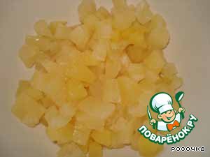 Креветки отвариваем, добавляем к ананасу и все перемешиваем.