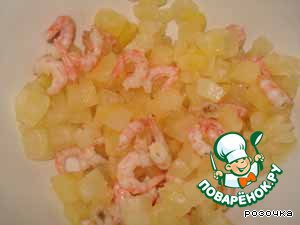 | Легкий салатик с креветками и ананасом. Без майонеза. |