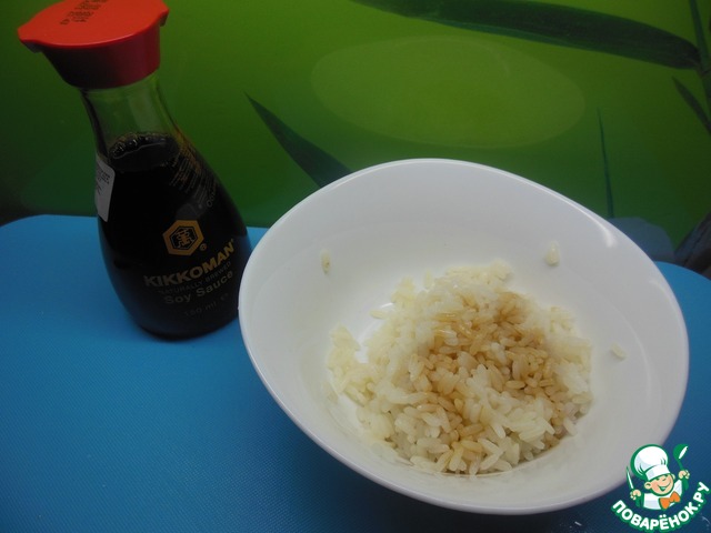 Рис поливаем соусом, перемешиваем, даём немного постоять.