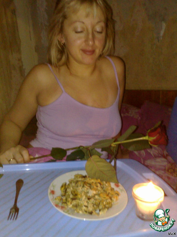 | Данный рецепт родился утром в День Рождения моей любимой ПОЛОВИНКИ (самой любимой жены). В состав пошли подручные продукты. |