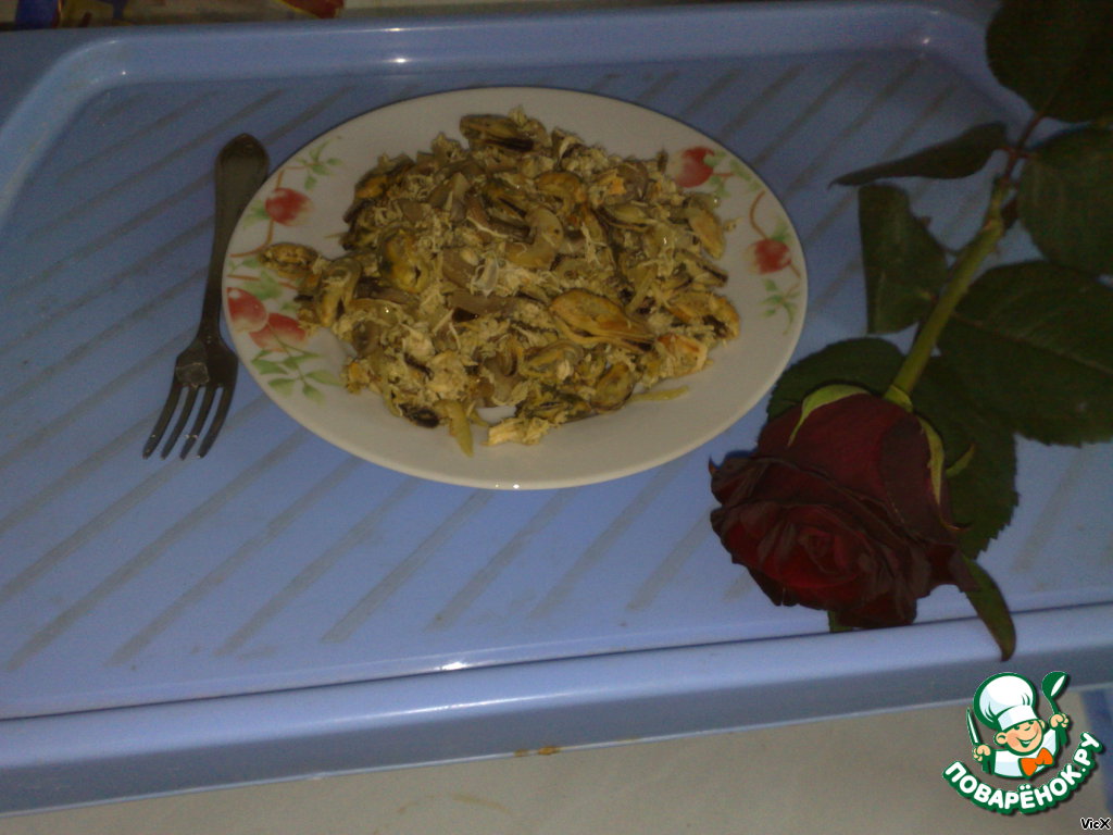 Данный рецепт родился утром в День Рождения моей любимой ПОЛОВИНКИ (самой любимой жены). Так как она очень любит морепродукты, решил побаловать мидиями. Накануне вечером перерыл почти весь инет в поисках чего-то интересного из рецептов. Однако ничего не нашел по причине отсутствия