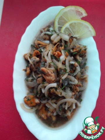 | Думаю рецептик придется по вкусу всем любителям мидий))) можно кушать как теплый салат, а можно и охладить... Блюдо готовится очень быстро, по этому не все процессы сняла)) |