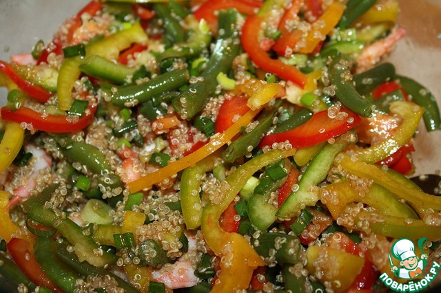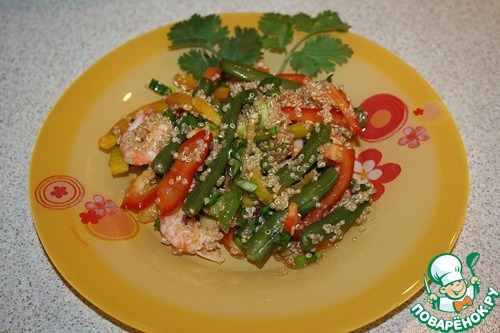 Салат с креветками, фасолью и киноа