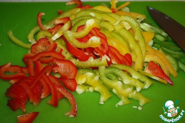 Очистить сладкий перец и нарезать соломкой.