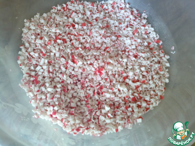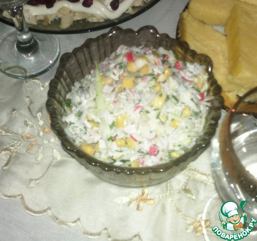 | На сайте полно рецептов крабового салата, но такого не нашла. Попробуйте, получается очень вкусно! |