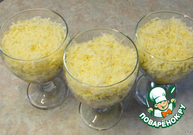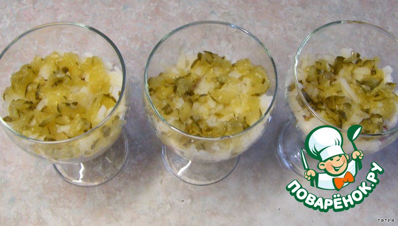 | Сытный салат делается порционно, подойдет к праздничному столу. |