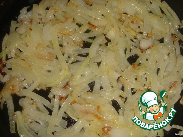 Лук порезать полукольцами и обжарить на растительном масле.