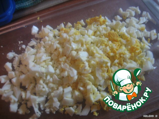 Измельчаем яйца.