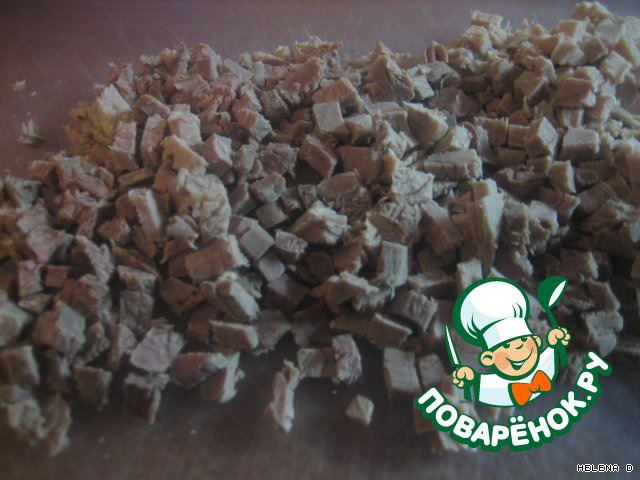 Нарезать отваренное мясо (извините, пожалуйста, за некачественное фото).