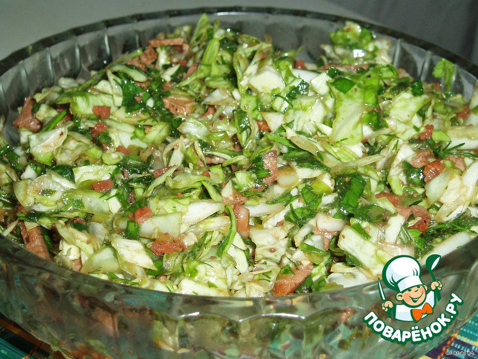 | Весенний салат, можно готовить только когда есть молодая капуста и щавель. Готовила в первый раз по рецепту коллеги по работе. Очень понравился. |