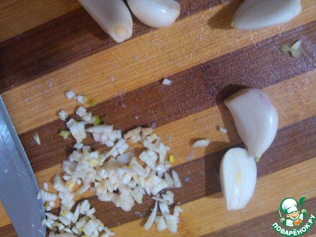 Чеснок очень мелко нарезать ( только не через чеснокодавку!), смешать с жгучим красным перцем и чуть обжарить в масле (2-3 ст. л.). Влить кипящим в салат.