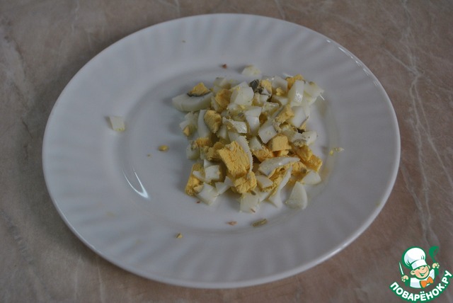 Отварное яйцо нарезаю кубиками.
