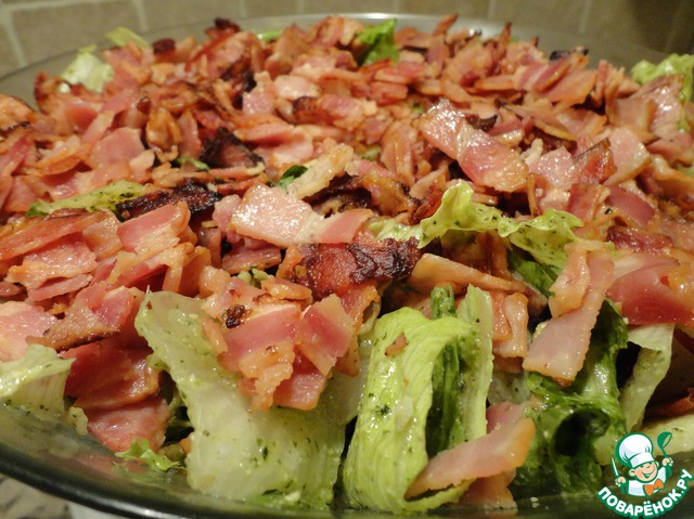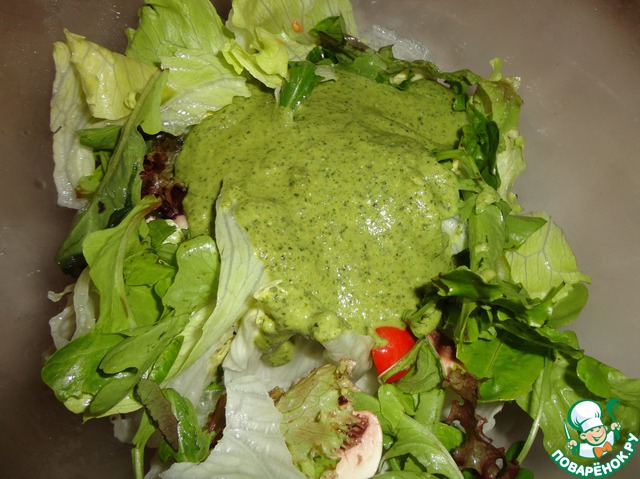 | Салат просто великолепен! Различные виды салата с соусом песто, пармезаном, беконом - блаженство! Каждый раз исчезает с праздничного стола первым! Рецепт был взят из одной из книг Сандри Лисандру. |