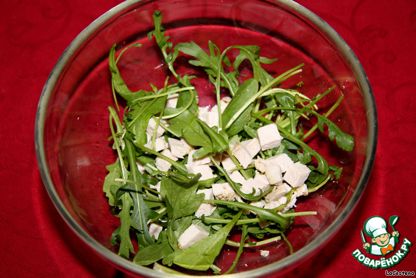 А теперь про салат. Рукколу помоем и положим в салатник.