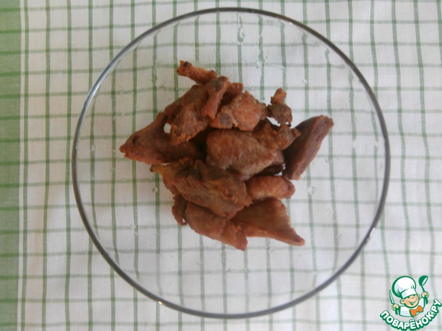 Обжариваю мясо до румяной корочки 10 минут, после чего, если вдруг мясо остаётся жёстковатым, вливаю 1/3 стакана горячей воды и припускаю мясо до готовности. Но сегодня мясо получилось великолепно - ароматное и хрустящее.
