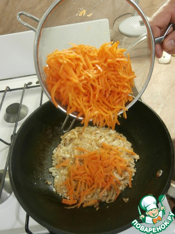 Нарезанную морковь опускаю в кипящую воду и бланширую 5 минут (строго пять минут), после чего откидываю на дуршлаг, чтобы стекла вода и остыла.
