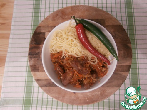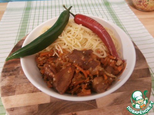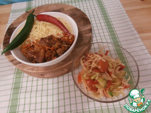 Это и понятно, после кусочка мяса с морковью, стараешься побыстрее затушить "пламя" салатом и спагетти. Эт-то круто!!!