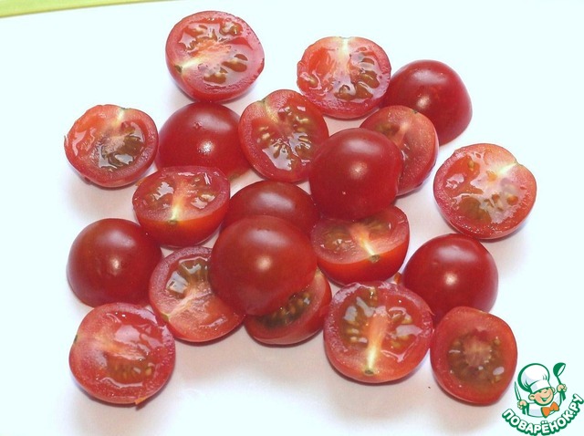 Помидоры черри разрезать пополам.