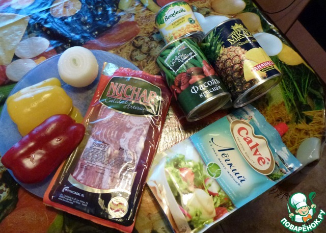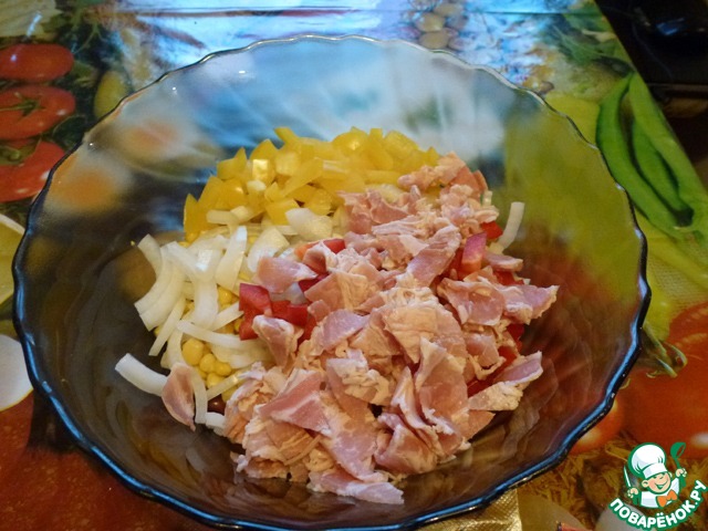 Добавляем бекон. Я - существо ленивое, поэтому режу его кухонными ножницами - так намного быстрее :)