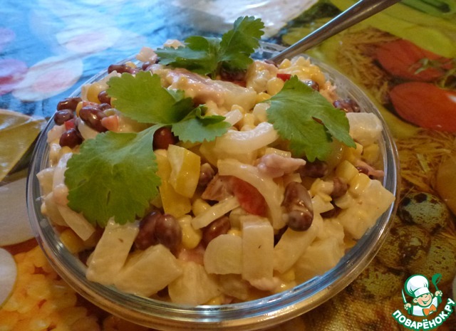| Простой, быстрый в приготовлении, вкусный и сытный салат. Настоящая палочка-выручалочка, когда нужно быстренько поразить гостей симпатичным экзотическим блюдом :) |